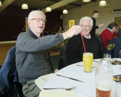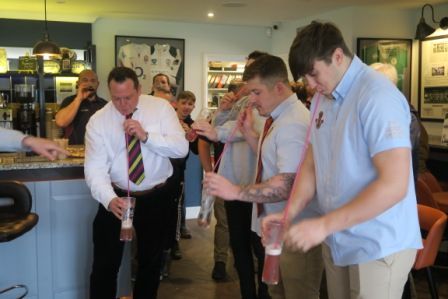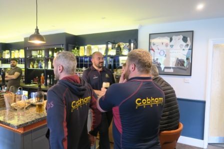 Happy senior coaching staff celebrate post game and Medway guests given warm welcome.