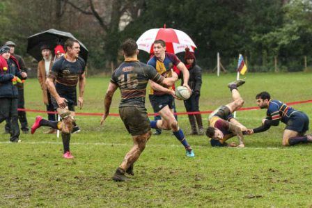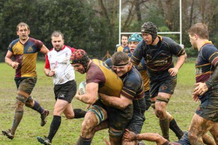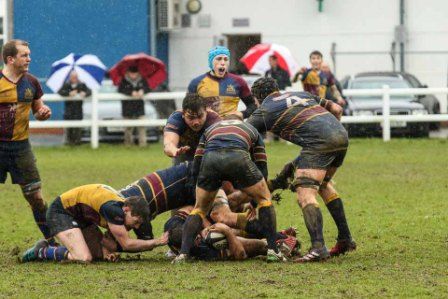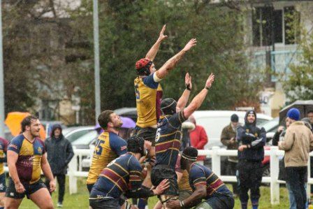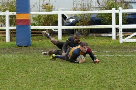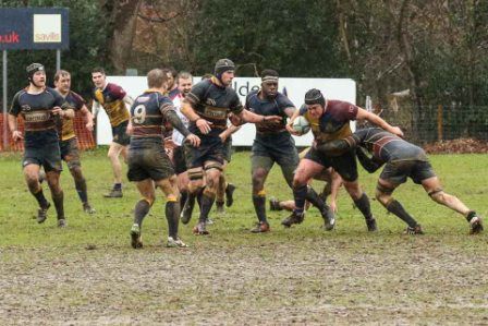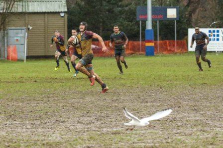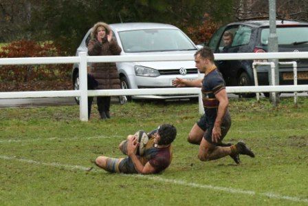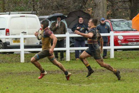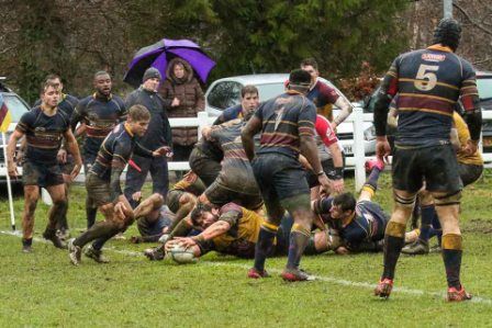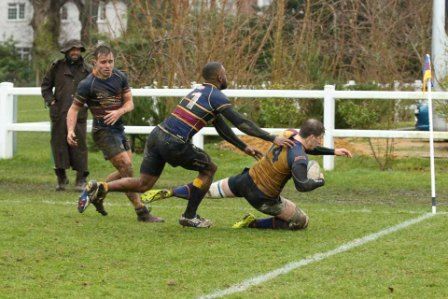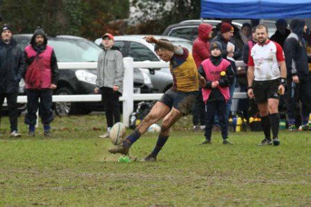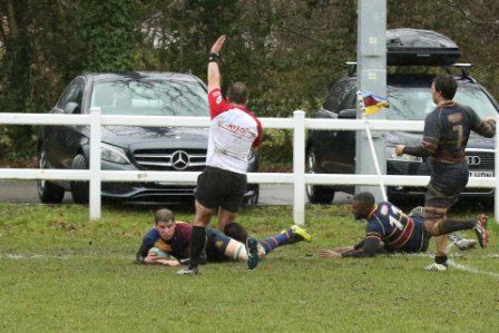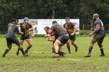 Despite the score line the visitors were defying their league position and a great kick to the corner flag secured a knock on from Cobham Colfe scrum and Andy O'Malley gained the important score Potter converting to 10-10. With penalties exchanged the half time score was 13-13.
