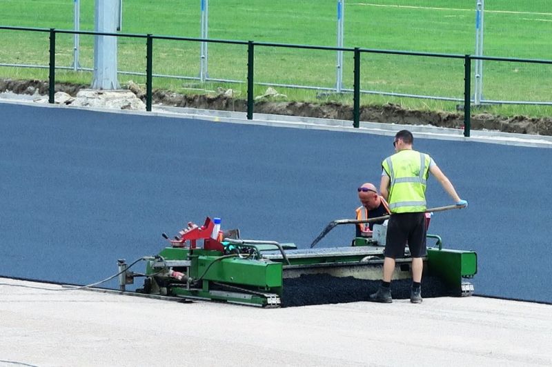 The most significant change this week has seen the 25mm thick rubber shock matting started to be laid, prior to the installation of the artificial grass carpet.
