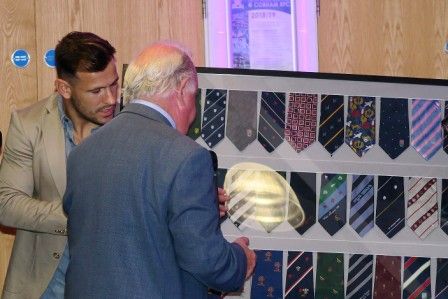Tony then presented a tryptic of picture frames into which had been mounted more than a hundred and twenty ties, which had been given to long time member Colin Herridge, during his time with the RFU and Harlequins and which Colin has now entrusted to the Club. Colin gave a brief explanation of the provenance of some of the ties and was obviously delighted to see them so well displayed. The tryptic will now be displayed in the Braemar Meeting Room.