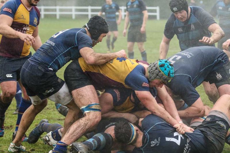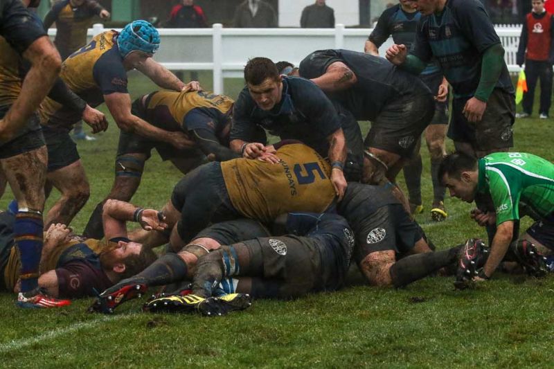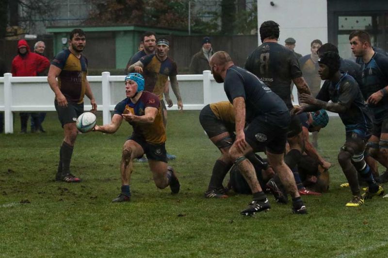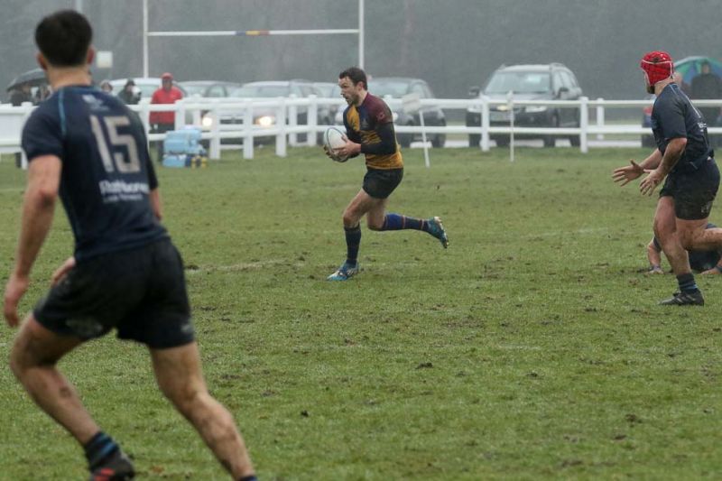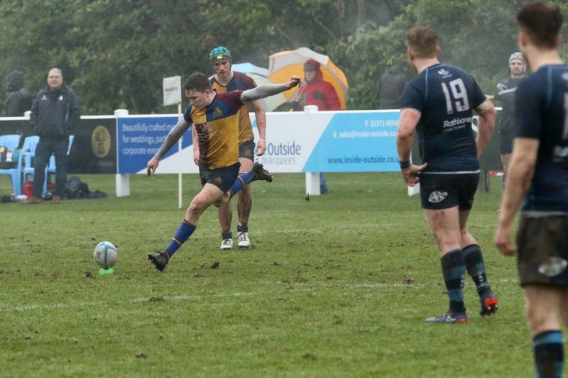 Despite the conditions, fullback James Clements was making inroads up the middle of the park every time he got the ball in hand and on one of his excellent runs from the back,was able to link up with fly-half Luke Flower to create a 2 on 1 to put wing Miles Fletcher in for the 1st Try, converted by Farrelly. Cobham 16-0 up.