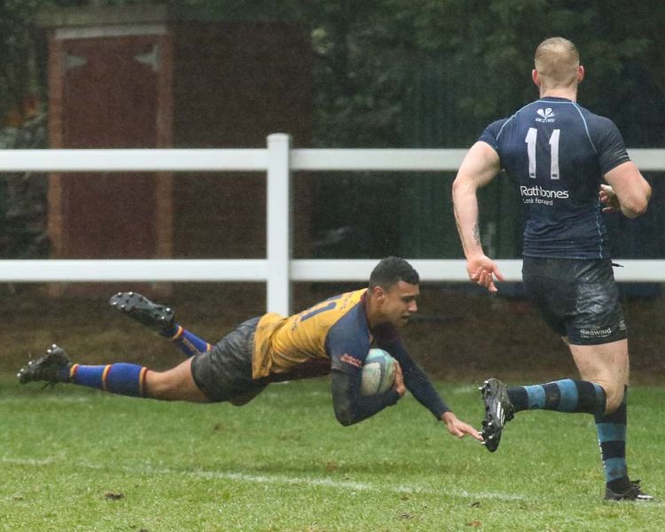 With the conditions not letting up, Chichester were looking to get back in the game, trying to turn the Cobham defence with probing kicks. From one of these kicks Cobham missed a loose ball, allowing Chichester to regain the ball & go in under the posts 16-7 to Cobham.