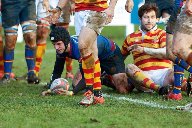 If Cobham’s backline was strong the first couple of scrums demonstrated that the pack were going to be dominant all afternoon as well and after twenty minutes of probing by each side the first score went to Cobham number 8 Matt Koep with a well taken pushover try. Ross Jones Davies converting 7-0.