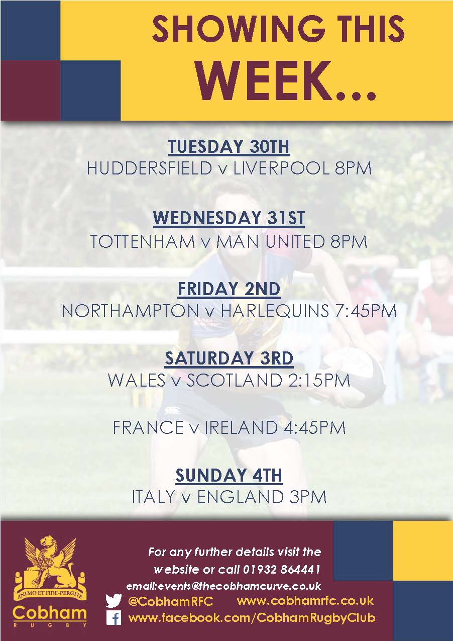 Cobham are hosting an RFU U16's Surrey v Middx game