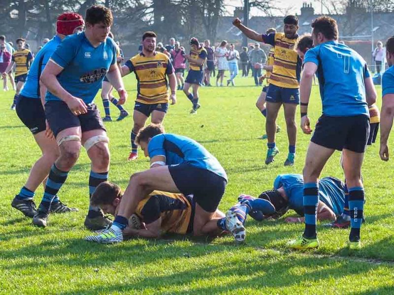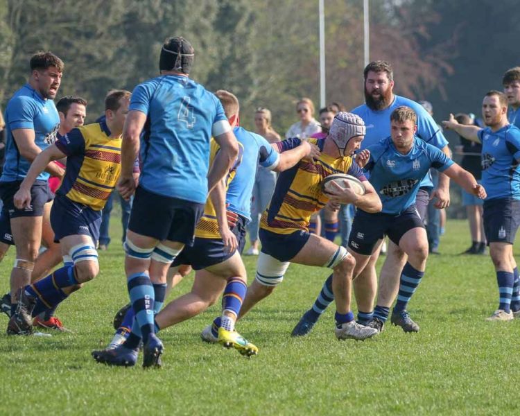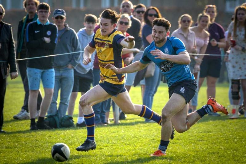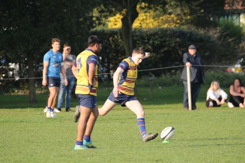 Chichester finally got themselves into the game but again they squandered a chance with a knock on. The resulting scrum provided Cobham with a free kick and Chi were again penalised in their half to give Farrelly a further penalty opportunity. This time the kick was off target and from the restart Chi built momentum initially from an interception. Cobham defended but at the cost of losing second row John Radford for a deliberate infringement receiving a yellow card. Taking advantage of the extra player Chi Captain and back row Charlie Wallace broke the tackle and fed number 8 Chris Johnson to go over for a try converted by fly half Henry Anscombe 10-7.