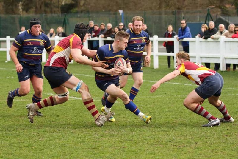 With the visitors dominance in the scrum now dictating how Cobham penalty infringments would be dealt with a drive over provided number 8 Sam Allan with a further converted score 20-28 with only 10 minutes remaining. Having lost their losing bonus point and with just three tries to their name Cobham needed their bonus point try and spreading the ball wide they secured it and their 2 points when full back Will Sanders showed his electric pace to touch down wide 25-28.