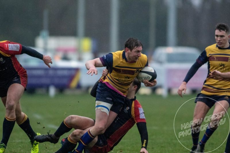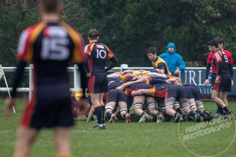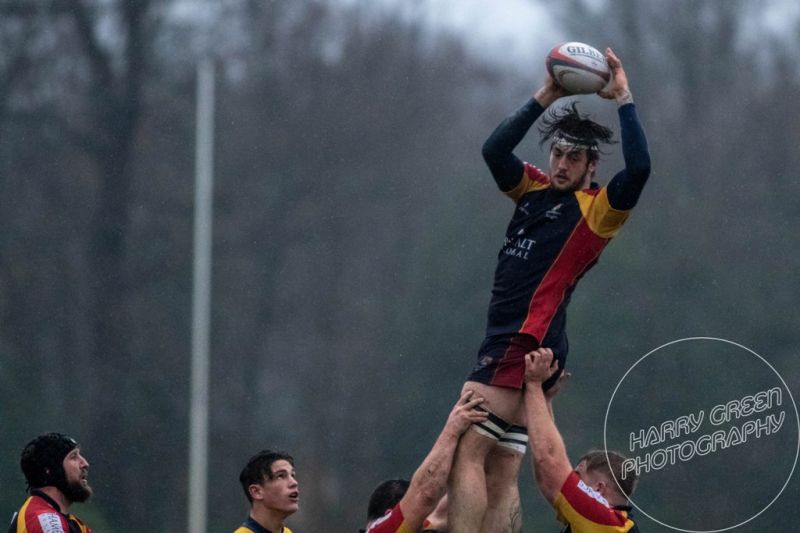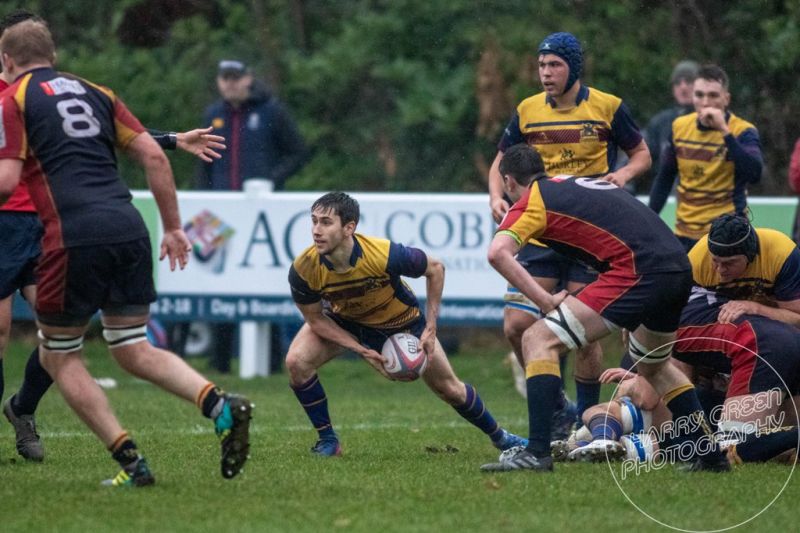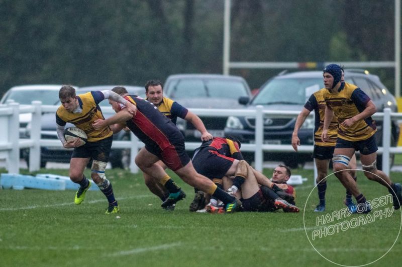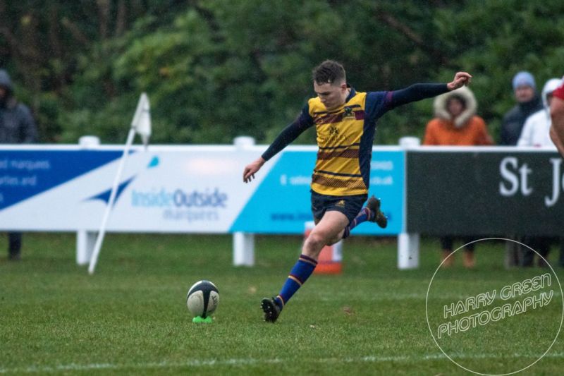 With the weather deteriorating it might have been expected for the play to become literally bogged down but both sides moved the ball wide and it stayed in hand. Chobham infringed and Farrelly extended the lead with a well struck penalty 21-10 but a yellow card for Max MacDonald for an adjudged high tackle took Cobham down to 14. Chobham took advantage when they converted line out ball into a rolling maul and crossed the line and kicked the extras 21-17 and it appeared as if we were on track for a trademark close finish. However there was nothing nebulous about Cobham's response,relentless driving, mauling and rucking saw scrum Tiernan White pick up and dive over the line under the posts 28-17 and we were into the final ten minutes.