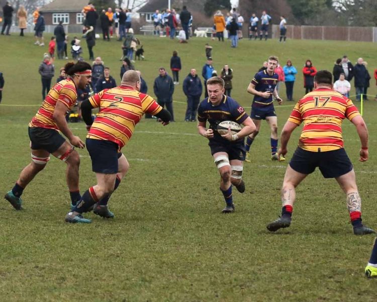 Medway have an imposing pack but that did not reflect dominance all afternoon and from the first scrum Saunders feed the ball down the line and as George Tunnacliffe closed in on the line he deftly offloaded to winger Will Sanders who tore down the wing for the first try wide out. The angle did not daunt Tom Farrelly and the scoreboard read 0-7. That was the ideal start for Cobham.
